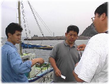 正午過ぎに高荒さんをピックアップし、一路勝山を目指す。ビール&食糧調達のため金谷のセブンイレブンによると小曾根さん、ビンちゃんと会う。15時頃、港に到着。西さん、大野さんは既に到着済。程なく全員集合。